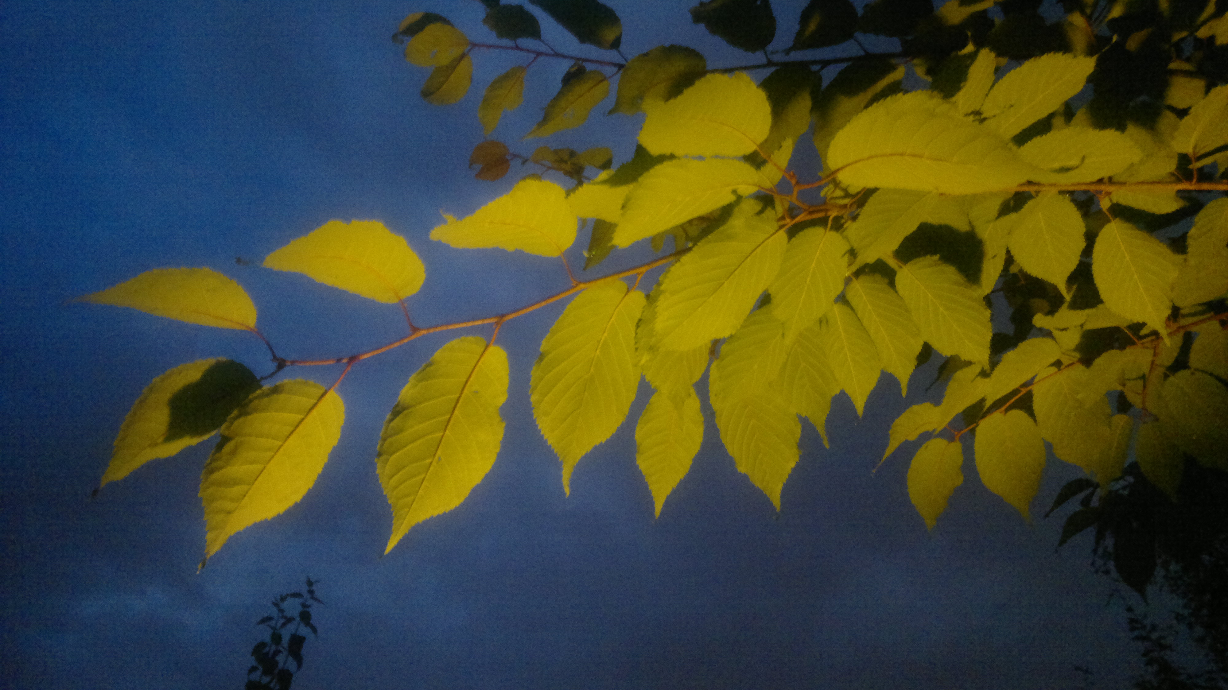 Rusokirsikkapuu pimenevässä illassa