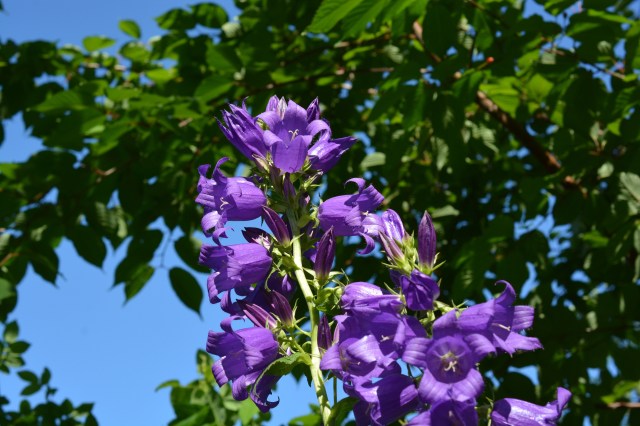 Ukonkello rusokirsikan suojissa