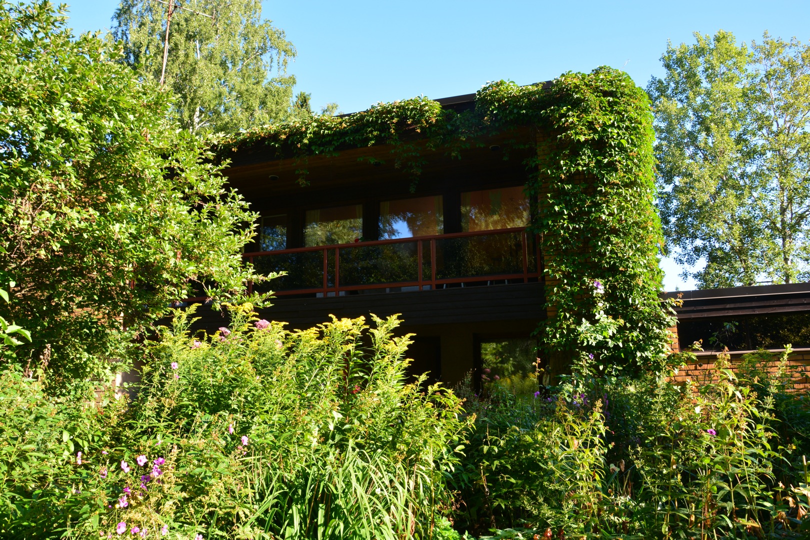 Myöhäiskesän aamu, vihreyttä ja sinitaivasta