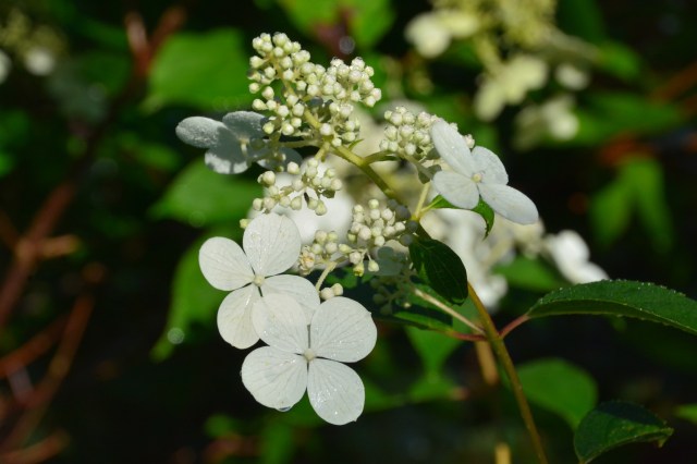 Mustialan syyshortensia kukkii, kukkii