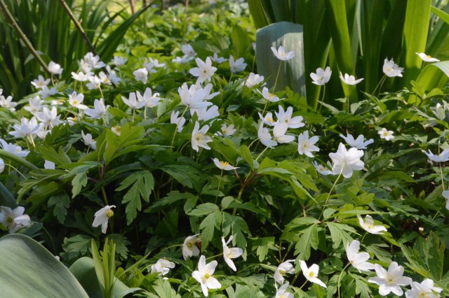 Valkovuokkoa puutarhassa