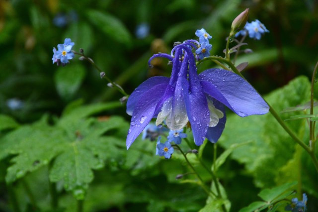 Sateinen akileija lemmikkeineen