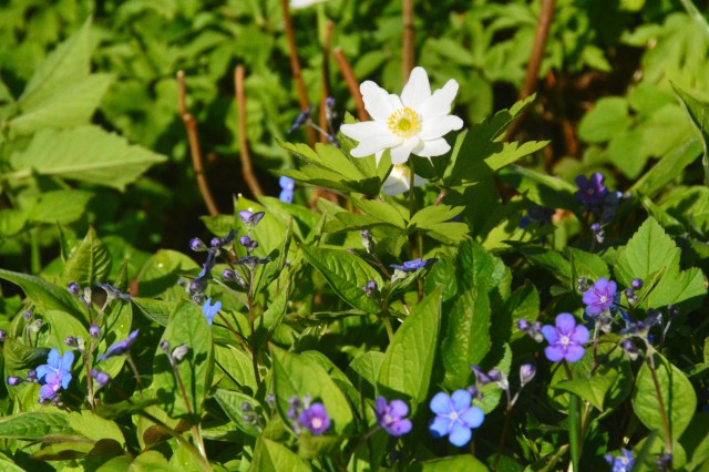 Valkovuokko kevätkaihonkukkien seurassa