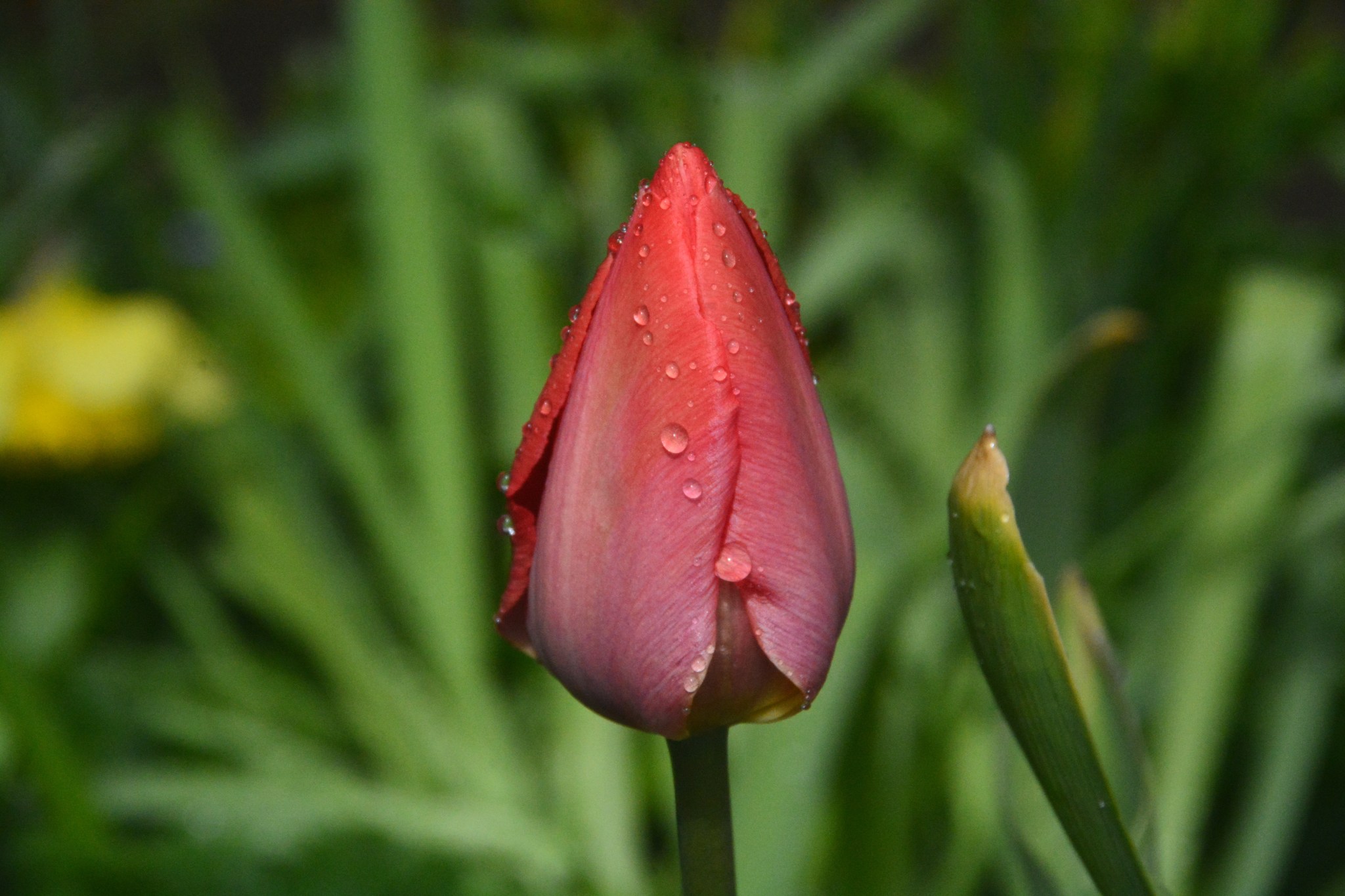 Tulppaani supistelee sateella
