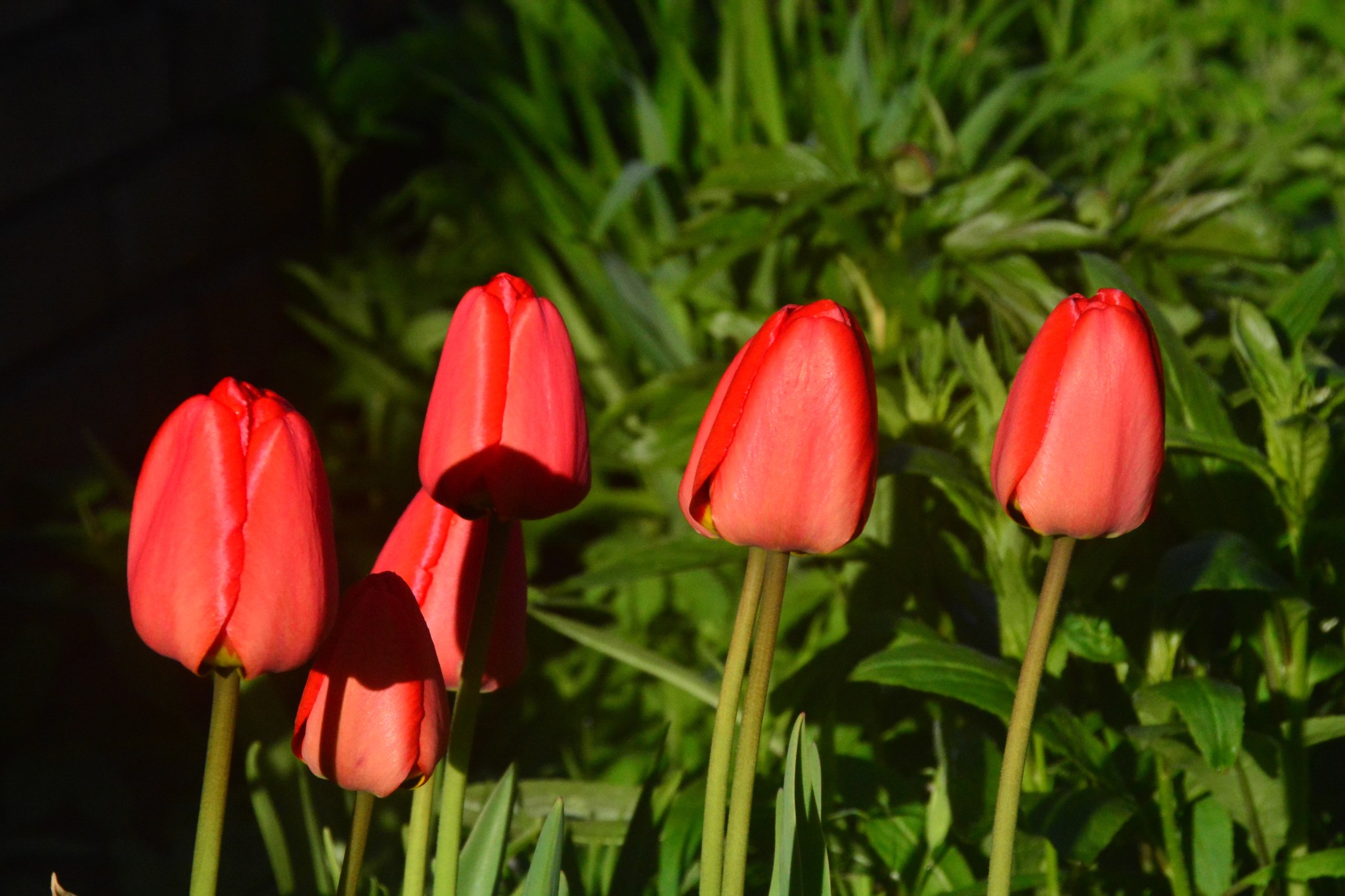 Ilta-aurinko sävyttää varsinkin tulppaanit aivan upeasti.