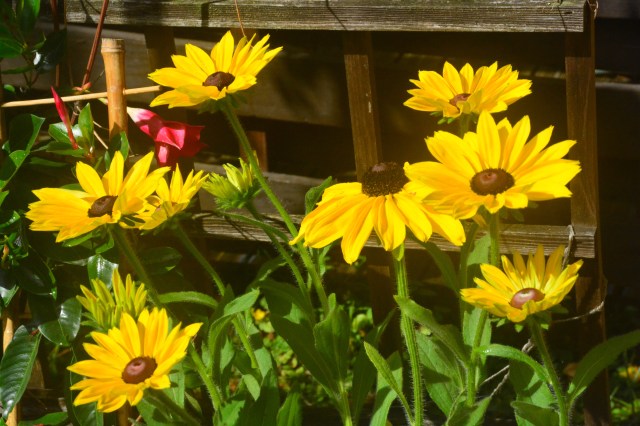 Aurinkoista kukkaa laatikossa