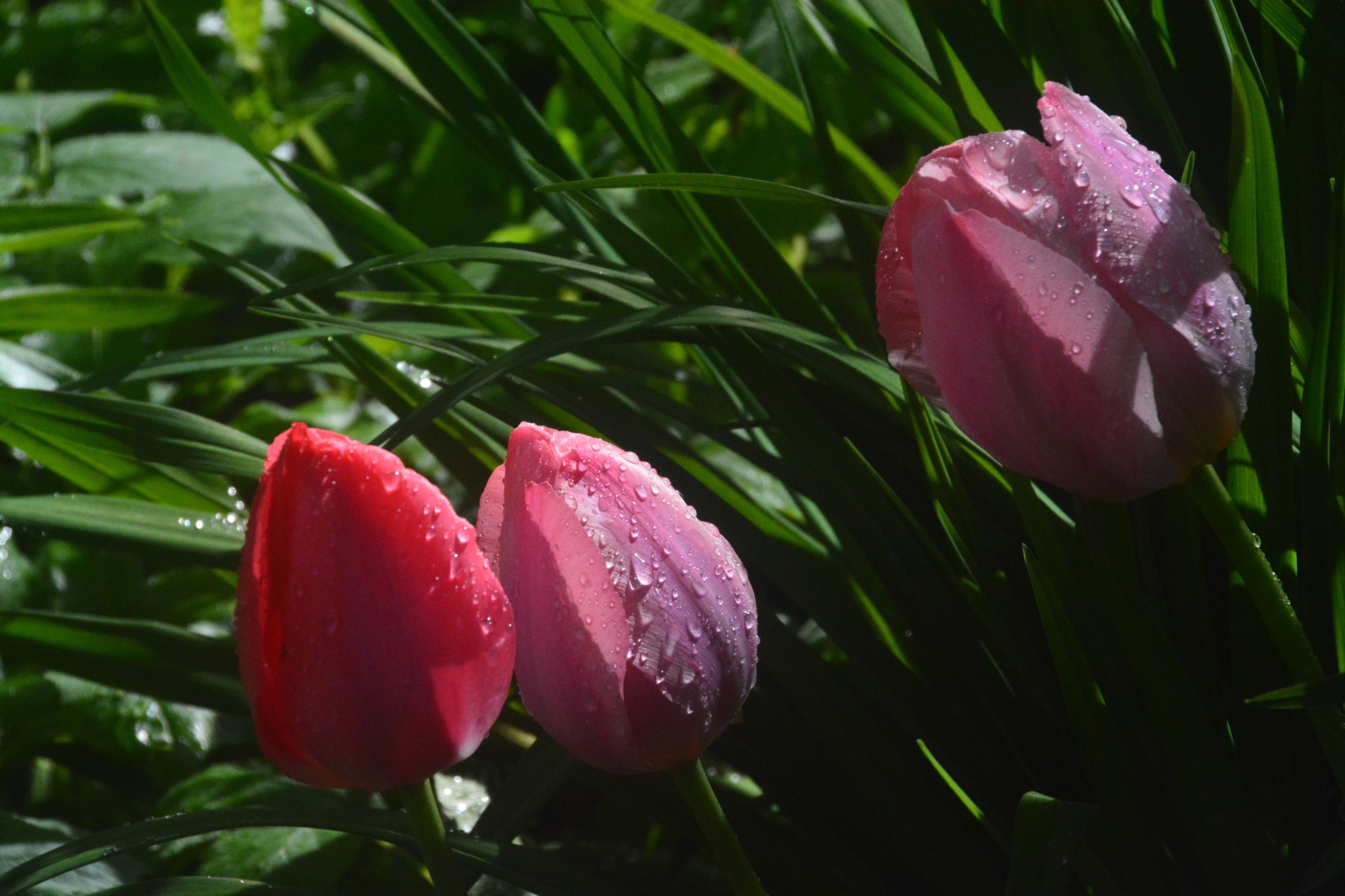 Punaisesta vähän lilaan, pisaroivat alkuillassa.