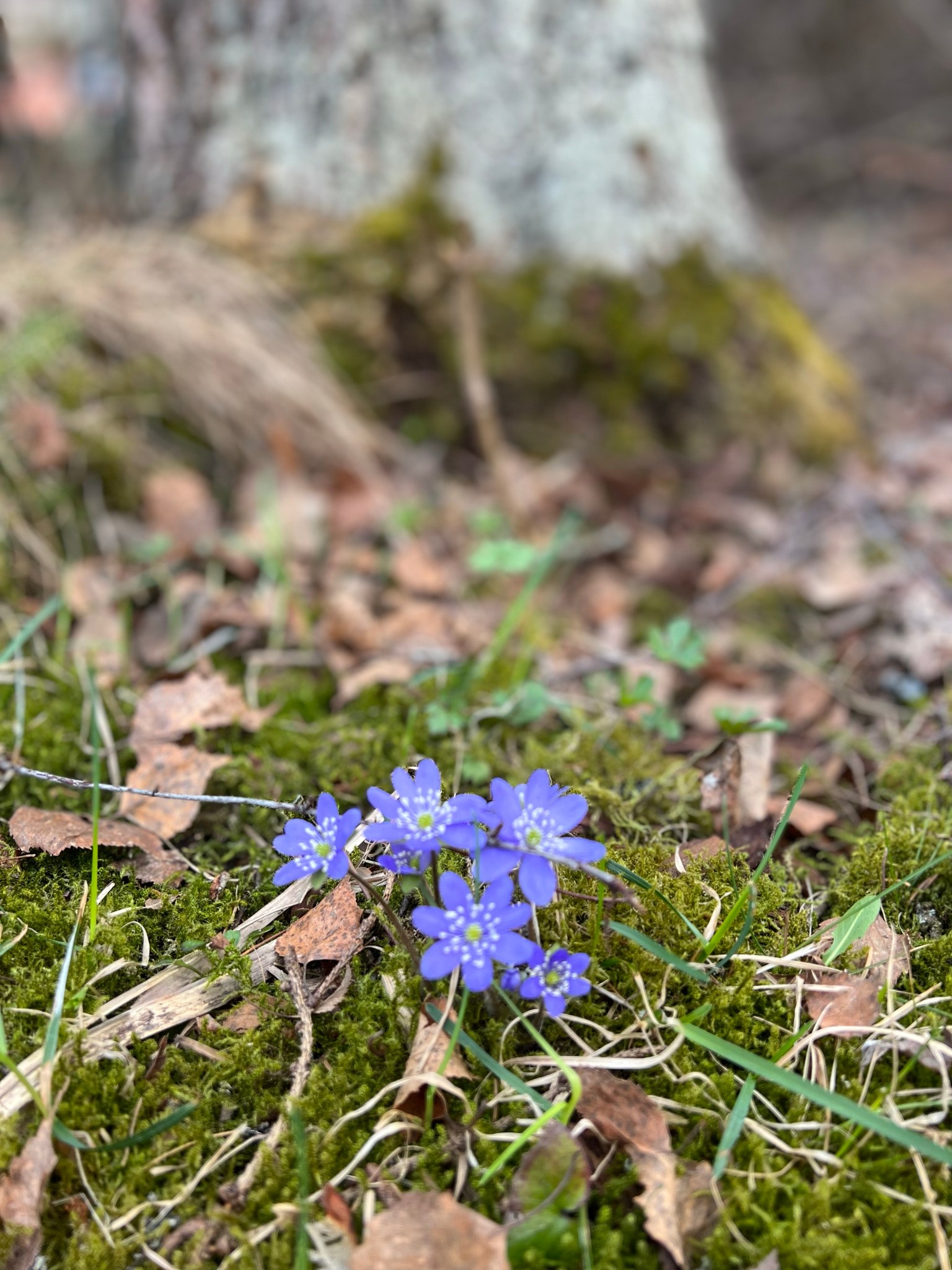 Sinivuokko sammaleessa, puutarhamme ei ole mikään golf-kenttä 😊