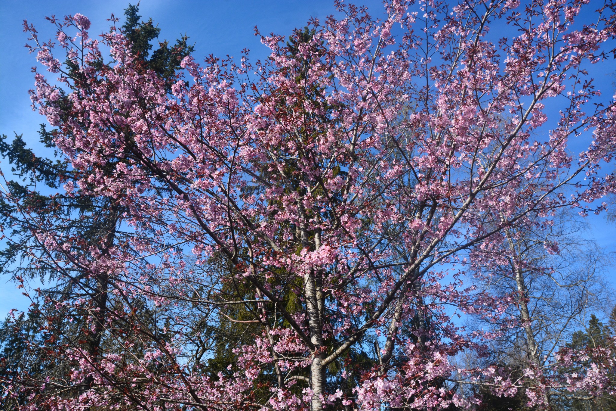 Rusokirsikkapuu, taustalla hiilinielua
