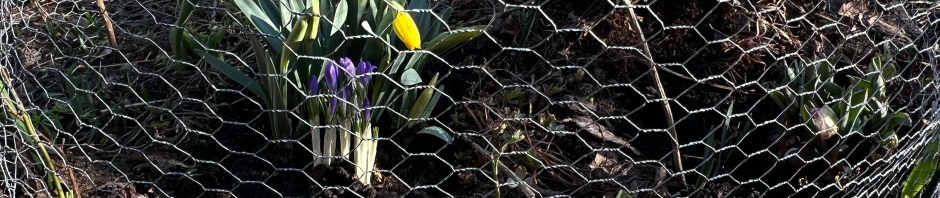 Tarkoituksena suojata lähinnä kerrottua tulppaania (oikealla) peuroilta. Sinänsä ehkä toivoton homma ja uhri häkissä niinkuin velipoikani totesi 🤓